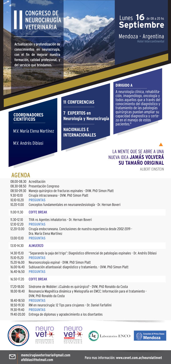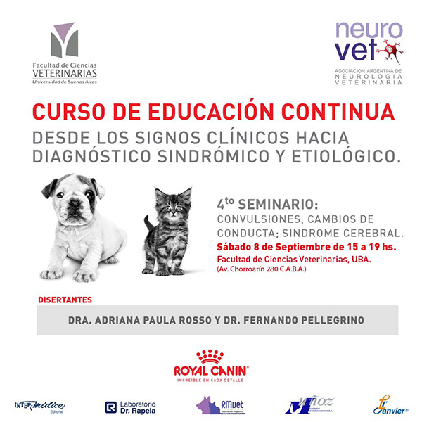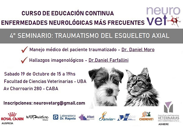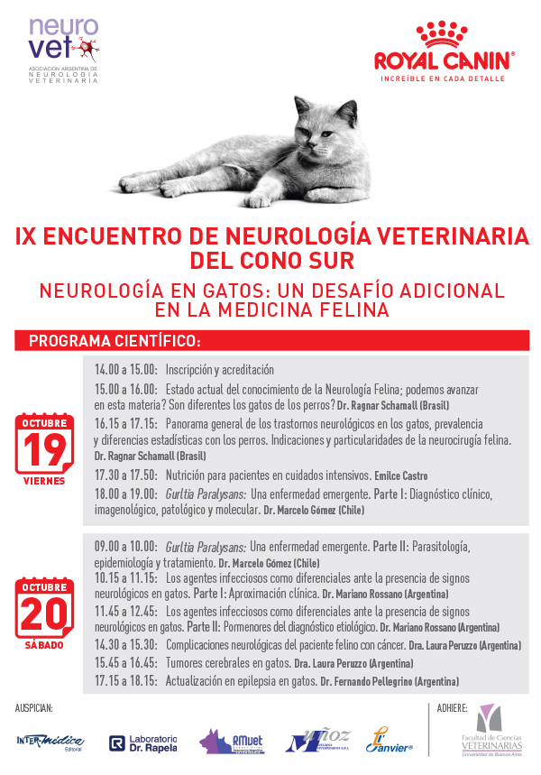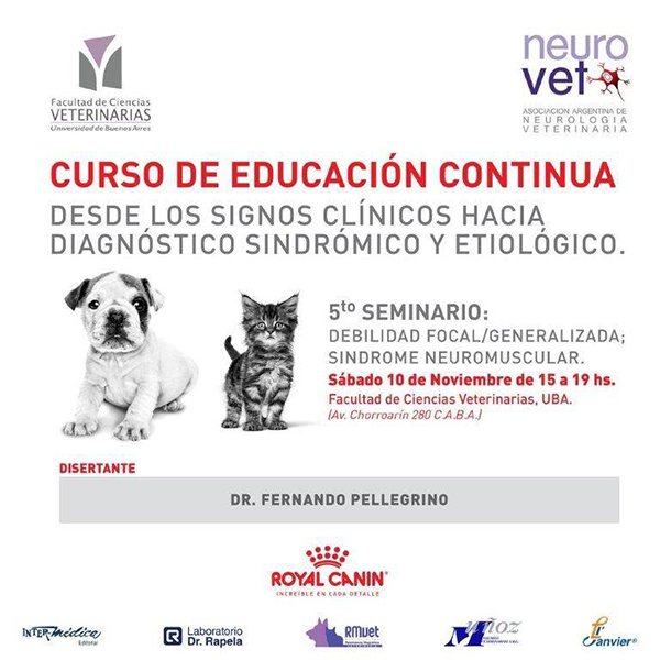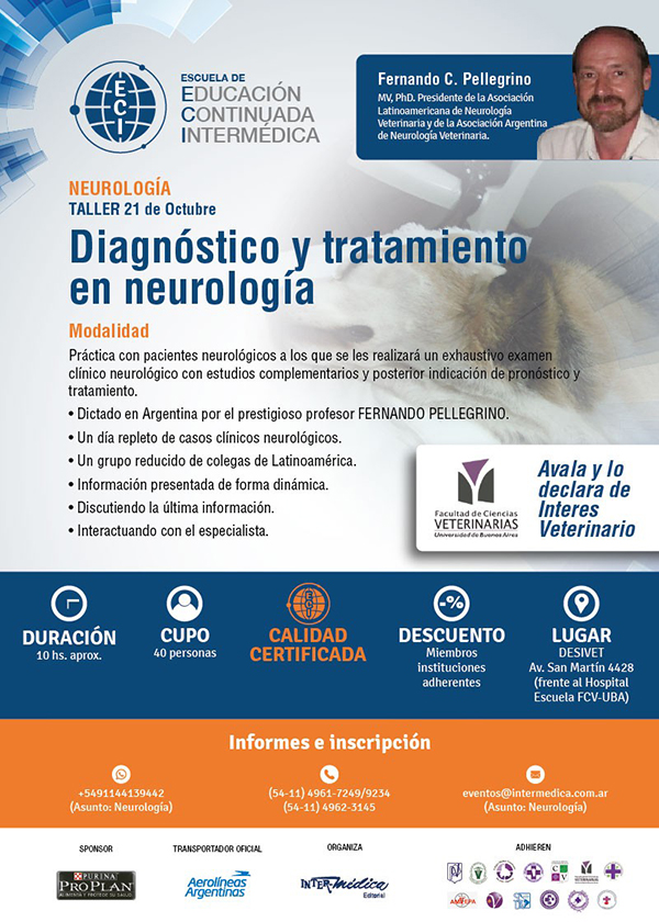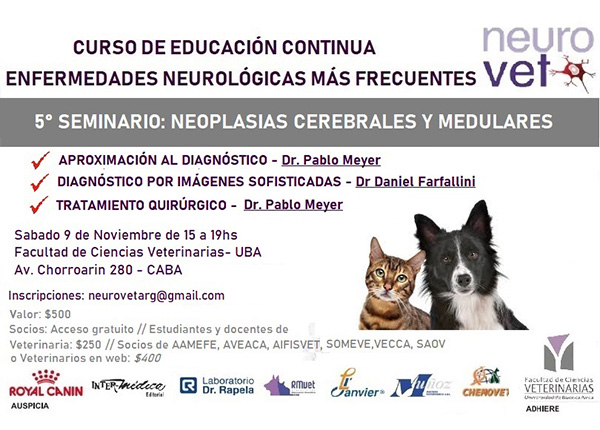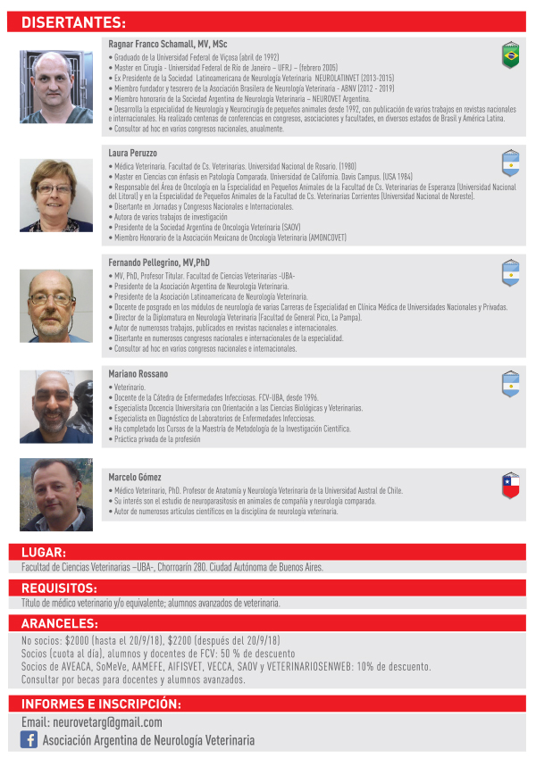 Con inscripción previa. Recuerden realizar la inscripción previa por mail a neurovetarg@gmail.com o por mensaje privado en nuestro Facebook: Asociación Argentina de Neurología Veterinaria.