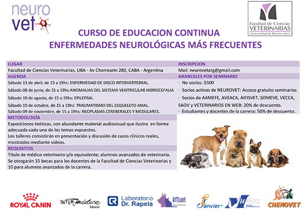 Recuerden realizar la inscripción previa por mail a neurovetarg@gmail.com o por mensaje privado en nuestro facebook.
