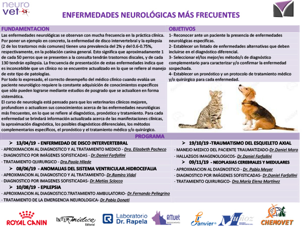 y no pudo concurrir a las PRIMERAS JORNADAS DE NEUROLOGIA VETERINARIA podrá verlas on line en forma gratuita a través de veterinariosenweb.com.ar a partir de fines de junio.